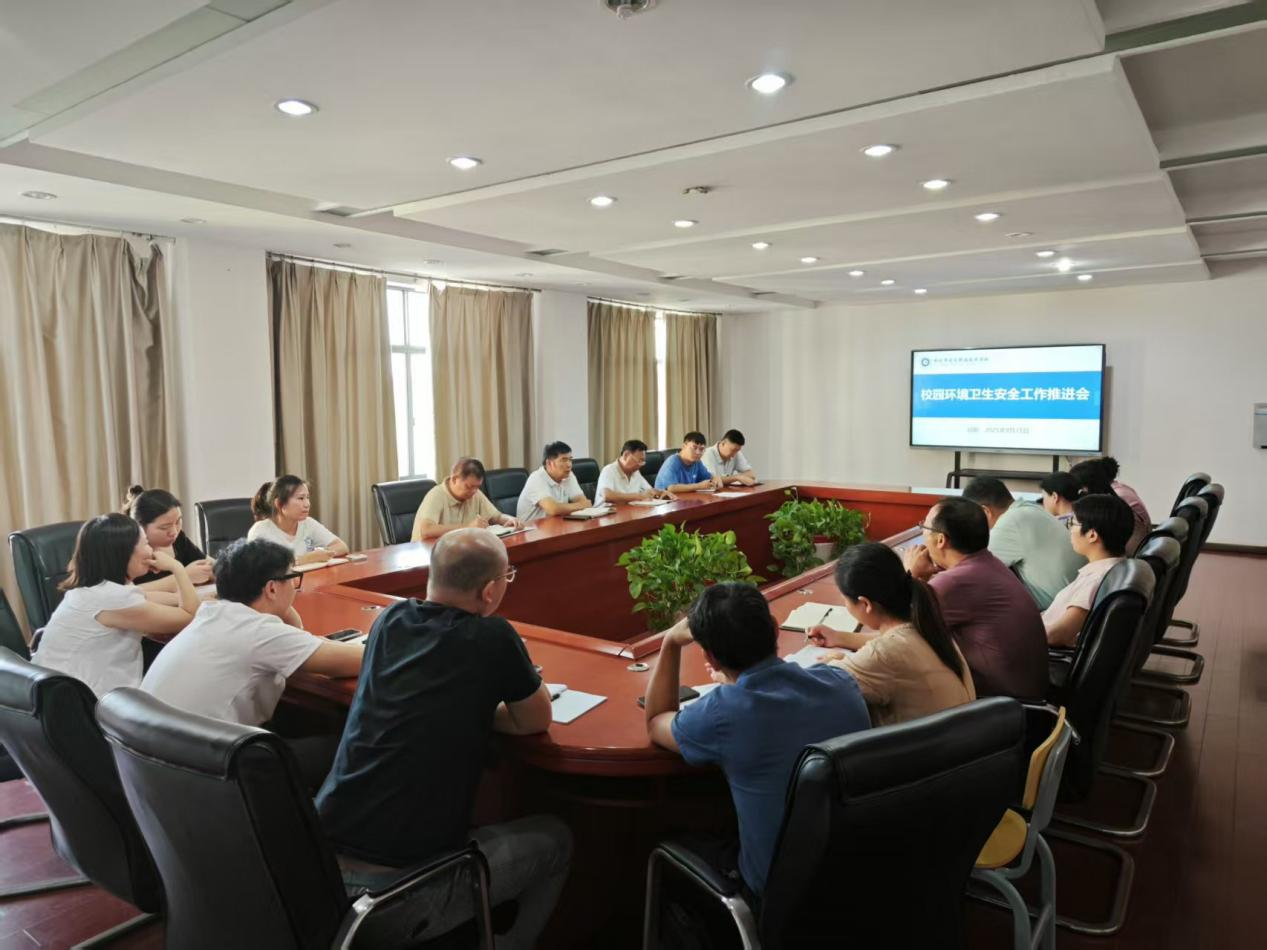2025年9月15日下午,新余市渝水职业技术学校高铁校区召开校园环境卫生安全工作推进会。校长肖红伟、常务副校长伍金虎、副校长王青及全体中层管理干部、各系部主任出席会议,共商校园卫生安全大计。