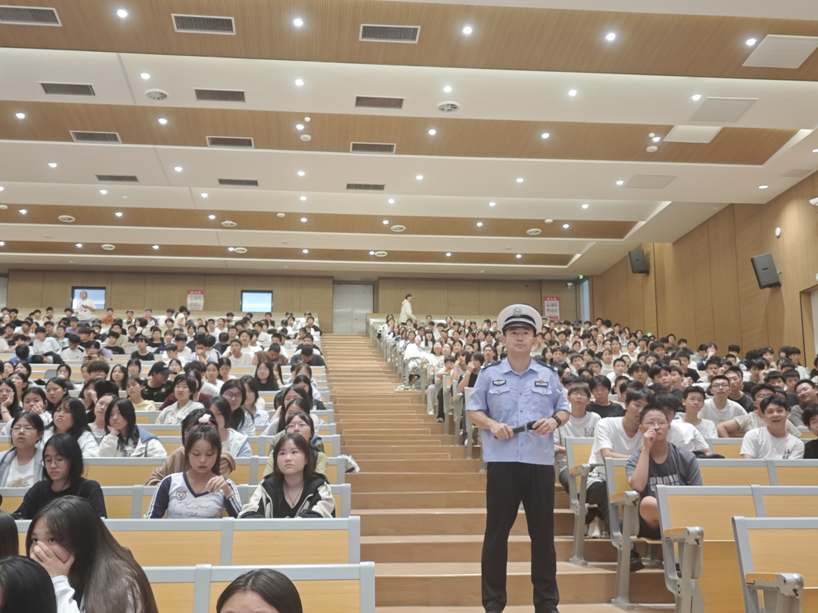 讲座伊始,罗警官通过播放一系列触目惊心的交通事故视频,直观地展现了交通事故的严重后果,瞬间吸引了同学们的注意力,让大家深刻认识到交通安全的重要性。随后,罗警官结合学校周边的交通环境和学生出行特点,详细讲解了步行、骑行、乘车等方面的交通安全知识。
