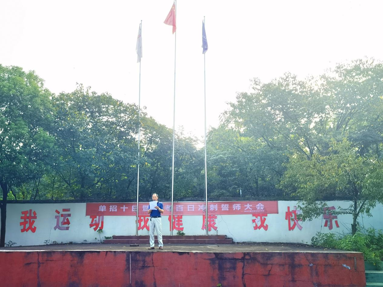 仪式在雄壮的国歌声中拉开帷幕,五星红旗冉冉升起,全体师生肃立行礼,场面庄重而热烈。副校长万水生在国旗下讲话,他首先代表学校向高一新生致以热烈欢迎,并强调高中阶段是锤炼思维、塑造人格的关键时期。他提出三点建议:一是以"初学者"心态归零重启,主动适应高中节奏;二是以"修行者"姿态勤学善思,夯实学科根基;三是以"探索者"精神融入集体,在社团活动与体育竞技中实现全面发展。