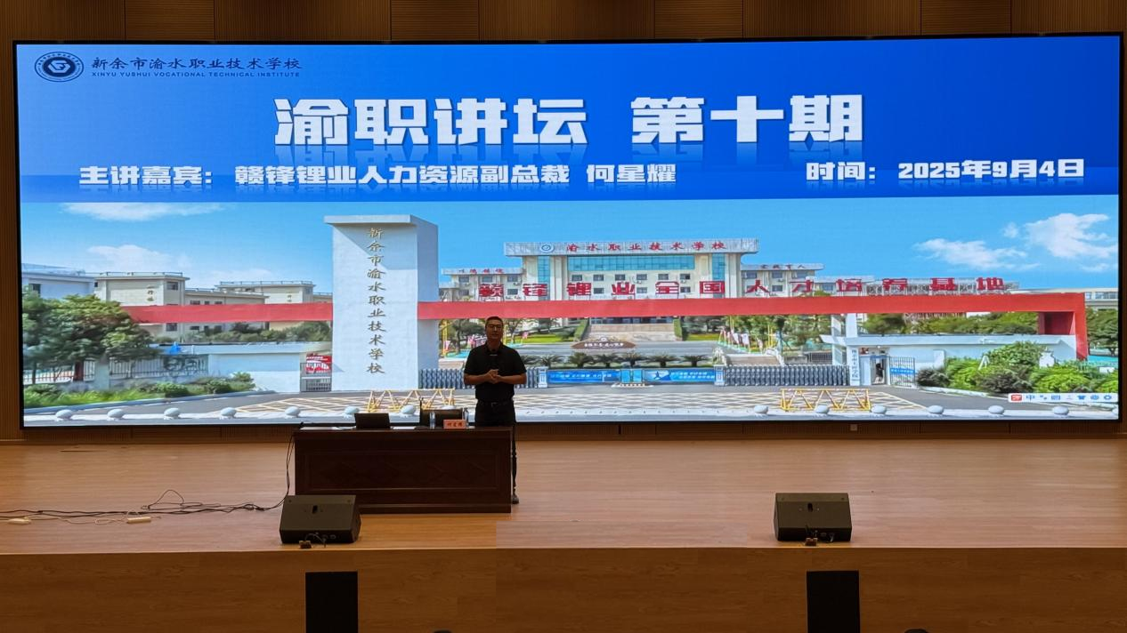 为帮助我校 25 级新生明确职业方向、规划成长路径,9 月4日上午,我校特邀江西赣锋锂业集团股份有限公司人力资源何星耀副总裁来校举行《渝职讲坛》第六期活动,为全体新生带来主题为 “如何敲开世界 500 强的大门” 的专题讲座。讲座围绕行业趋势、企业需求与职业规划展开,为新生们点亮了职业发展的明灯。